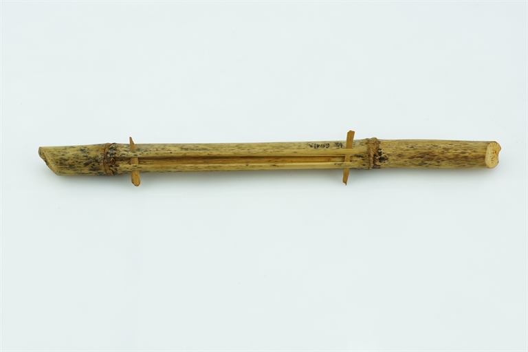 The instrument was made in the Gereci family - they were famous single and double flute makers. The decorative motifs are drawn as three rings on three sections (upper, middle and bottom), and dots are made around the air inlet so as to form a flower. When the instrument was brought to the Museum, a wooden cork was inserted on the upper side of the pipe so the instrument would not be played, and in order to only use it for exhibitions.