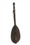 The fiddle is crafted from one block of dark wood. Four holes for four pegs (“čivije”) are bored on the upper part of the neck. However, two pegs are missing thus only two strings are pulled through. A cross is carved on the bottom of the body, and a head with a “blind eye” is carved on top of the neck.